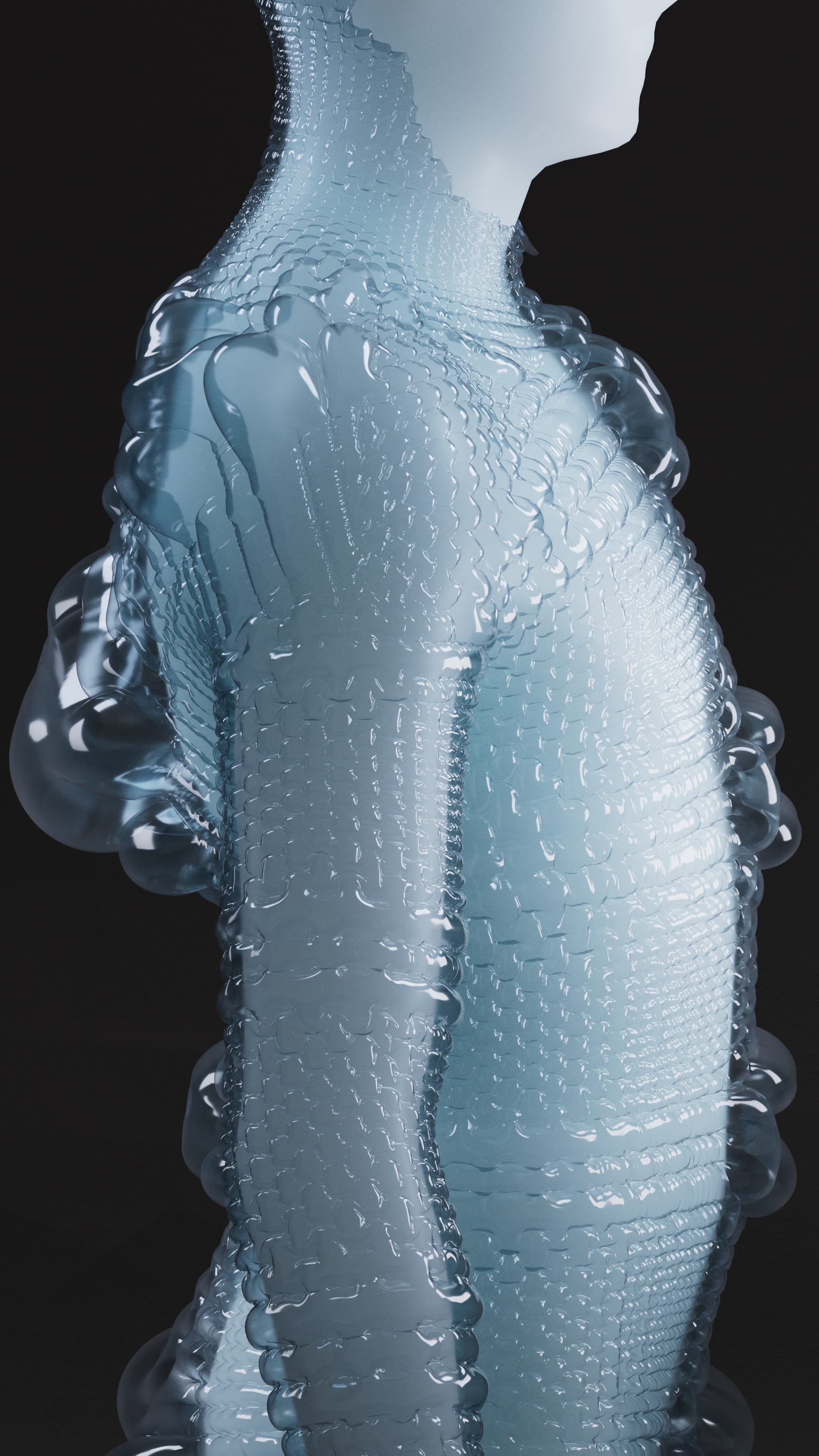 This body of work explores wearables not as fashion but as architectural experiments at the scale of the body. Developed during my tutoring for DesignMorphine’s Prosthesis chapter, the series uses computational design tools to test how form, structure, and ornament might be reimagined when the body becomes the site of architecture. Many of the pieces take the form of inflatable garments—ephemeral architectures that expand, contract, and transform in response to air and movement. Through these experiments, wearables act less as clothing and more as prosthetic architectures, speculative extensions that question what it means to inhabit space through the skin. Each artifact is both exercise and provocation, treating computation as a way of giving form to new modes of embodiment.