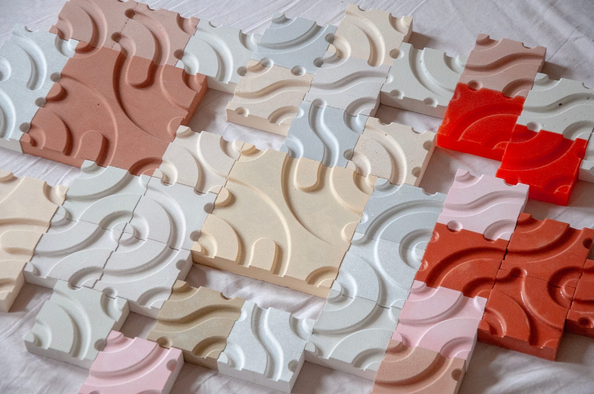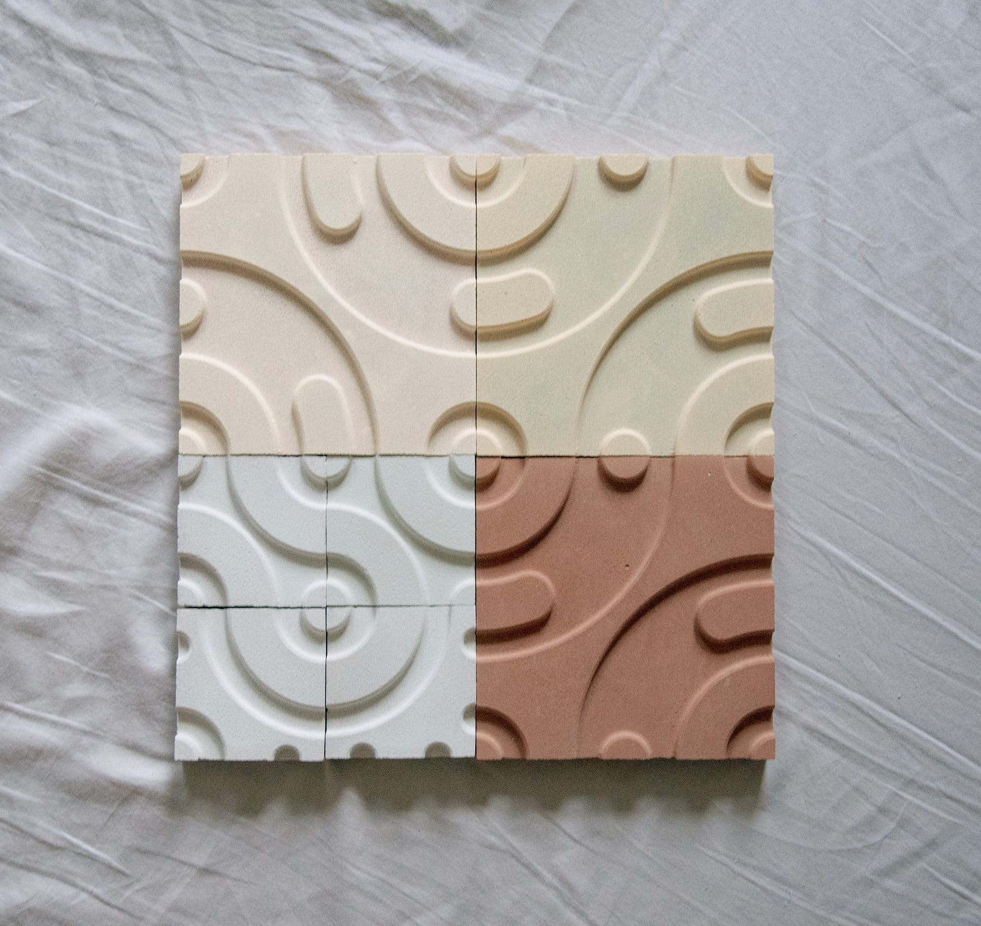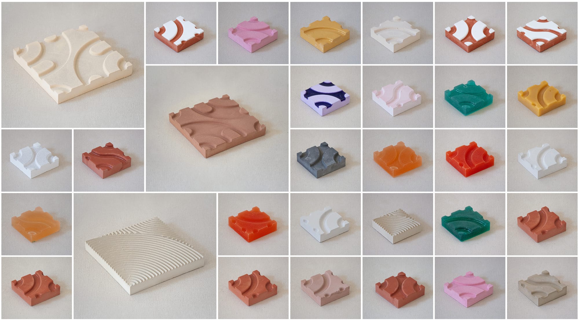 No Wrong Answers is an interactive artwork exploring modularity, materiality, and the beauty of open-ended systems. The piece consists of a series of rotationally symmetrical truchet tiles, each cast from diverse materials tinted with natural earth pigments. These tiles invite viewers to engage directly, arranging and rearranging them in countless configurations, each resulting in unique, valid patterns.
