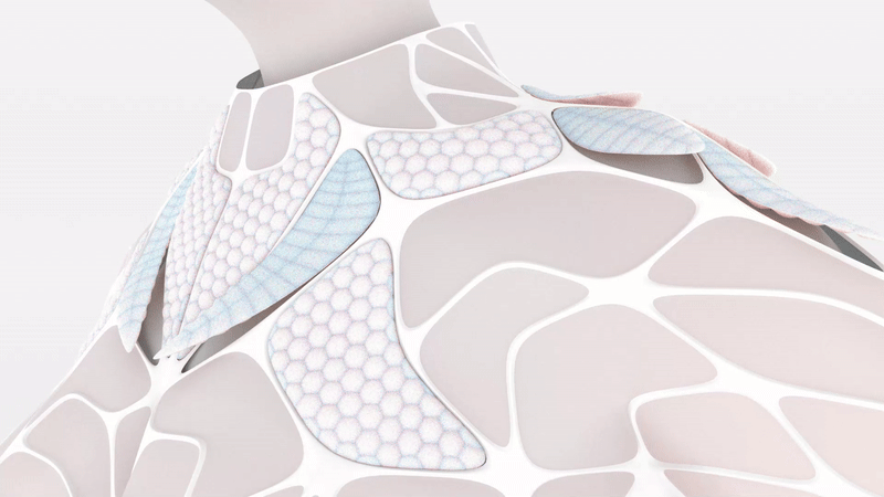 For Sense of Nature, I worked on the 3D visualization and pattern generation for the garment as a contributor. My role was to translate the conceptual idea of a wearable that responds to seismic activity into visual and geometric language, developing digital models and surface patterns that could be adapted for fabrication. This process allowed the team to test variations, explore material behaviors, and refine the garment’s modular design before physical prototyping.